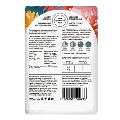 Florida (Флорида) влажный корм (пауч) для котят, кусочки с лососем в соусе 85 г