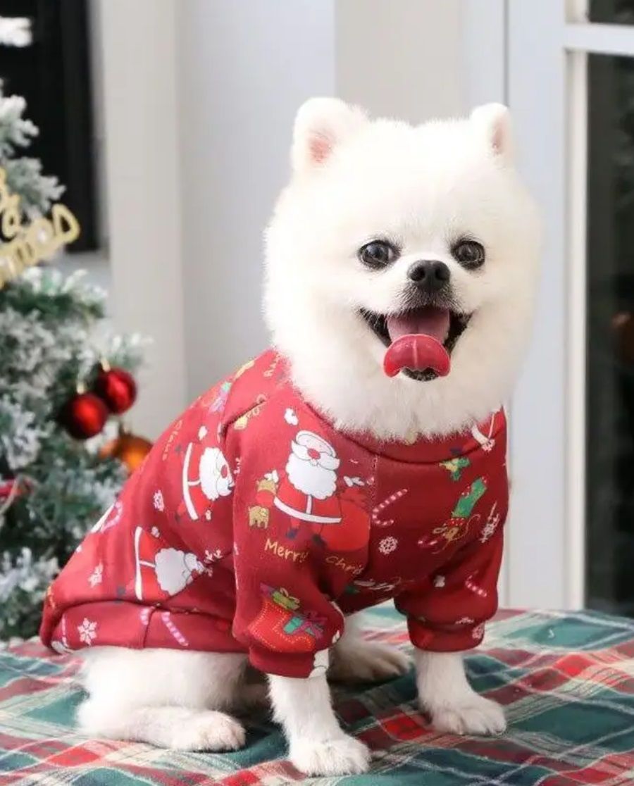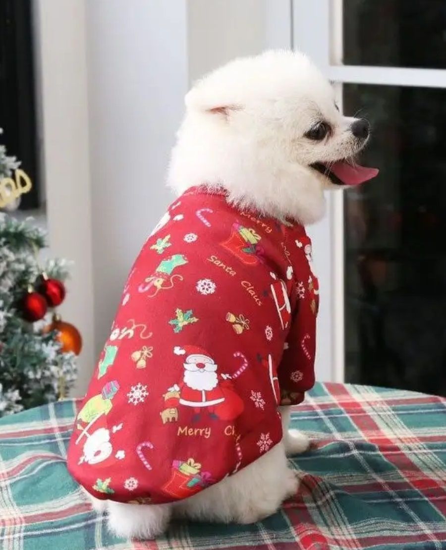 Толстовка с новогодним принтом для собак и кошек малых и средних пород: теплая, мягкая, комфортная имеет широкую горловину, что позволяет легко и быстро одеть питомца.Комфортный крой худи для не сковывает движение животных.