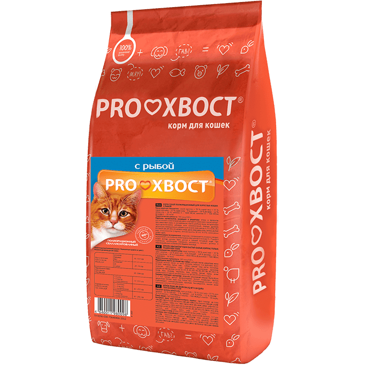 Сухой рацион Proхвост ("Прохвост") с рыбой – результат разработок специалистов по кормлению животных из Дании. В рецепт вошли продукты, которые всем хорошо известны и есть на кухне: мясо, рыба, овощи и злаки. Вот только готовый корм полезнее еды со стола человека – в нем соблюден оптимальный баланс питательных веществ (белки, жиры, углеводы). В сухом рационе их ровно то количество, которое требуется организму кошки.