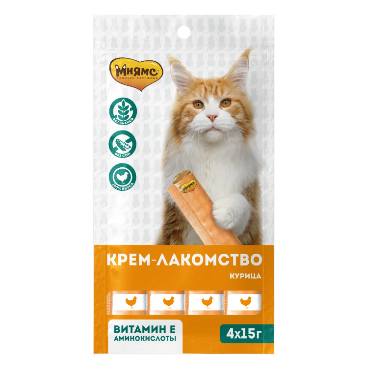 Крем-лакомство "Мнямс" с курицей – это изысканное угощение с нежнейшей кремовой консистенцией.