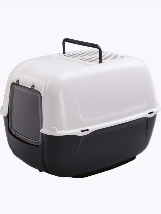 Практичный закрытый туалет для кошек из пластика, оборудованный всем необходимым для полного уединения вашей кошки.