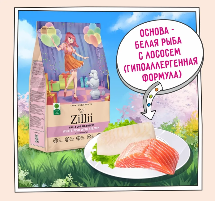 ZILLII Adult Dog Корм сухой для взрослых собак всех пород Белая Рыба с Лососем 15 кг