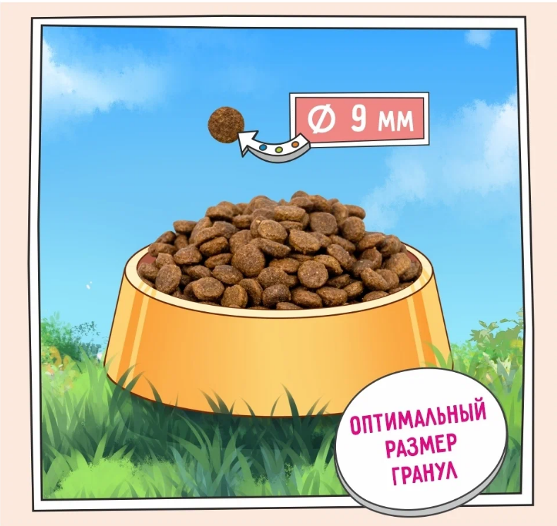 - Маленькие гранулы корма специально созданы с учетом физиологических особенностей собак мелких пород.