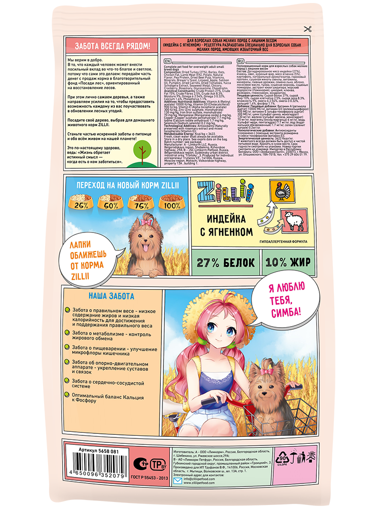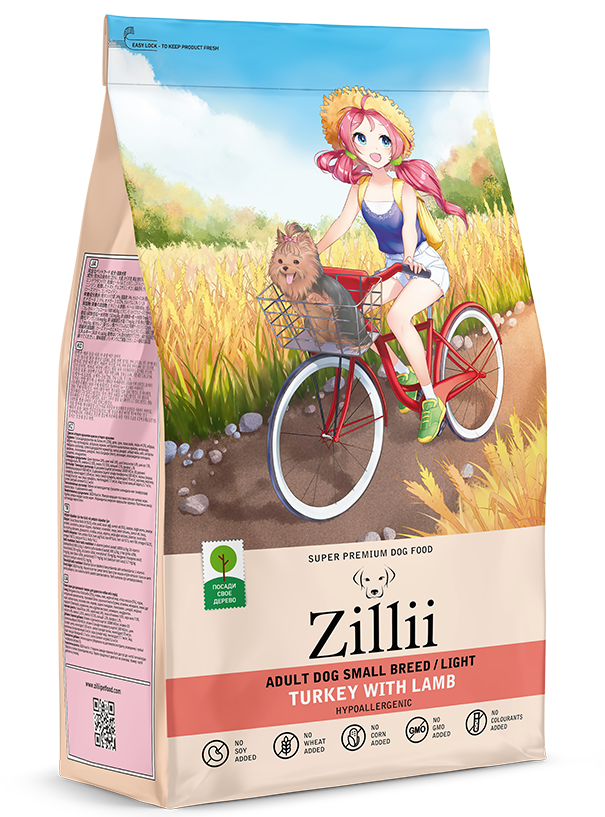 ZILLII Adult Dog Small Breed Light,сухой корм для собак мелких пород с избыточным весом, 3 кг Индейка с Ягненком