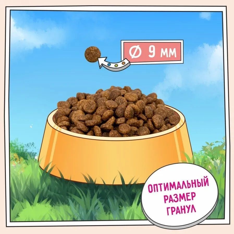 - Маленькие гранулы корма специально созданы с учетом физиологических особенностей собак мелких пород.